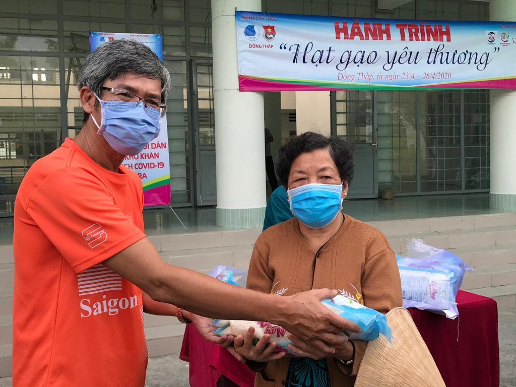 Ngày 23/4, chương trình Saigon Times – Nối vòng tay lớn đã đồng hành cùng Ban Thường vụ, Tỉnh Đoàn tỉnh Đồng Tháp phối hợp cùng Hội doanh nhân trẻ tỉnh Đồng Tháp đã hỗ trợ 280 suất gạo trao tặng cho bà con gặp khó khăn do dịch Covid-19.