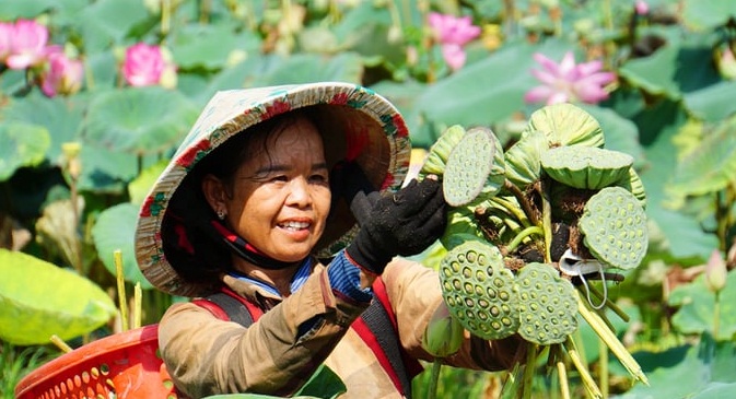 Nông dân trồng sen cho lợi nhuận cao gấp 3 - 4 lần so với trồng lúa – Ảnh: TL