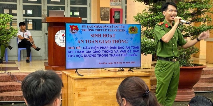 Theo đó, tỉnh đã chủ trọng vào việc tăng cường giáo dục kỹ năng, phòng ngừa rủi ro được thực hiện tại các cơ sở trường. Cụ thể, tại Trường THPT Lê Thanh Hiền (xã An Hữu), hơn 1.300 học sinh đã tham gia buổi tuyên truyền về an toàn giao thông và phòng, tránh bạo lực học đường, do nhà trường phối hợp với Công an xã và Đoàn Thanh niên tổ chức. Thông qua các phần trao đổi và chia sẻ thực tế, học sinh được trang bị thêm kỹ năng sống, ý thức chấp hành pháp luật, đồng thời hình thành thái độ cư xử đúng mực và tinh thần nhân ái. Hoạt động không chỉ giúp học sinh hiểu biết hơn về an toàn giao thông, phòng tránh bạo lực học đường mà còn góp phần xây dựng văn hóa ứng xử đẹp, hướng tới môi trường học tập an toàn, thân thiện.
