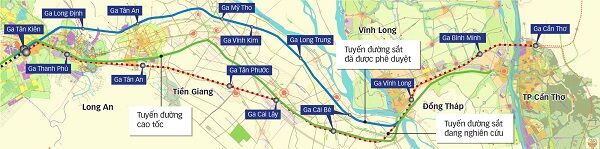 Tuyến đường sắt tốc độ cao thành phố Hồ Chí Minh – Cần Thơ với 9 nhà ga có điểm đầu là ga Tân Kiên và điểm cuối là ga Cần Thơ. Ảnh: Internet