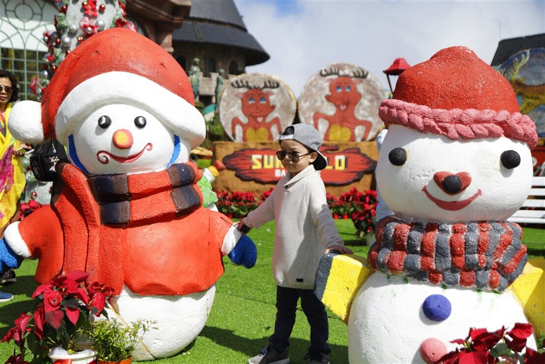 Nếu người lớn thích thú với những cây thông trạng nguyên độc đáo hay những tiểu cạnh lạ lẫm được dựng nên từ hàng trăm bông trạng nguyên rực rỡ, thì du khách nhí lại mê tít “khu vườn mùa đông” với đại cảnh gia đình ông già Noel vui nhộn.