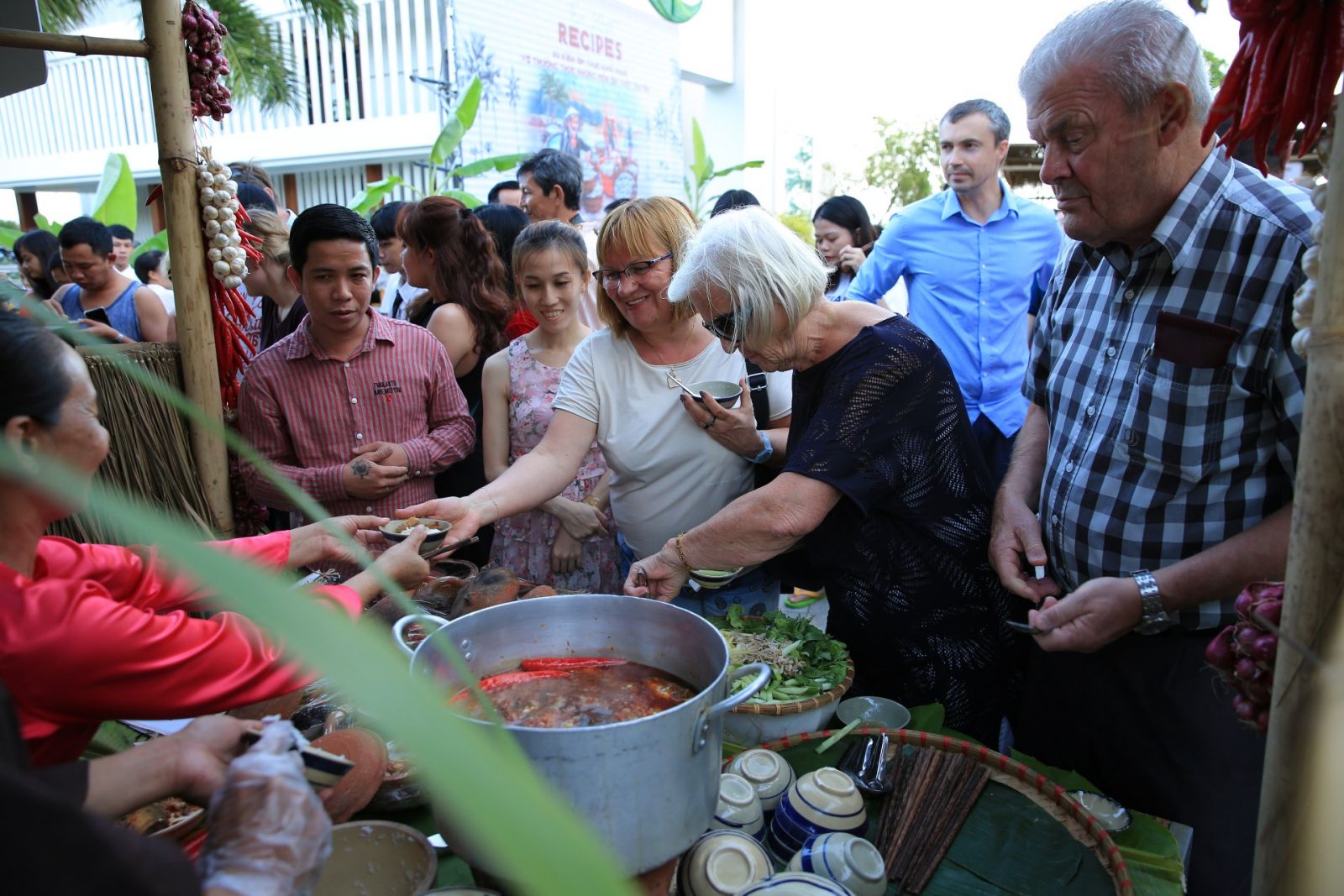Nhiều du khách đến từ các quốc gia như Ba Lan, Hàn Quốc... cũng như nhiều bạn trẻ Việt Nam tỏ ra rất thích thú với các gian hàng mang đậm chất xưa cùng với các món ăn ngon, lạ mắt mà lần đầu được nhìn thấy và thưởng thức. Từ cuốn chả giò cá trích giòn giòn đến món măng le kho giò heo đậm đà được cuốn với bánh tráng mè Phú Long. Đặc biệt, món cá nục kho ớt sừng được nhiều du khách ghé thăm và dành lời khen ngợi.