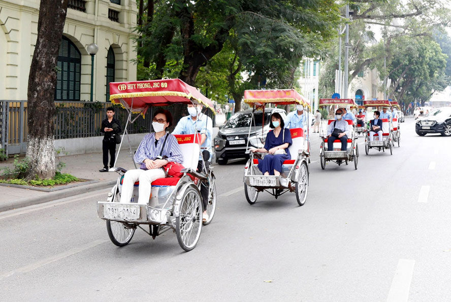 Du khách tham quan Hà Nội thực hiện nghiêm việc đeo khẩu trang để phòng, chống dịch Covid-19. Ảnh hanoimoi.com.vn