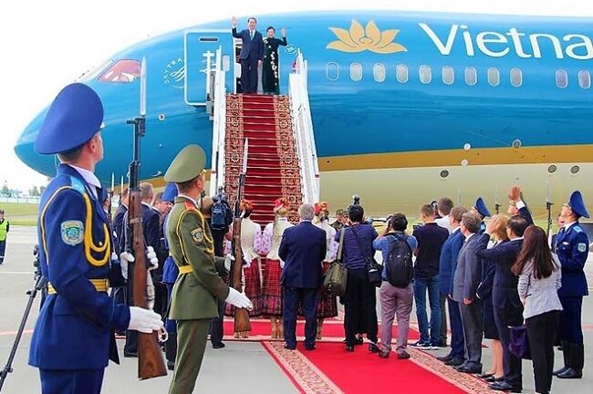 Chủ tịch nước Trần Đại Quang và Phu nhân thực hiện nghi lễ truyền thống tại sân bay