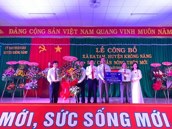 Chức mừng và động viên đơn vị, UBND Tỉnh Đăk Lăk, trao tặng bằng khen, cờ thi đua và cho cán bộ và nhân dân xã Ea Tam, UBND tỉnh cũng trao tặng 1 tỷ đồng cho đơn vị về đích NTM, UBND huyện Krông Năng tặng 200 triệu đồng cho UBND xã Ea Tam. Đồng thời, tặng giấy khen cho các tập thể và cá nhân có thành tích xuất sắc trong phong trào xây dựng NTM. UBND xã Ea Tam cũng tặng giấy khen cho các cá nhân và tập thể có nhiều đóng góp cho địa phương trong chương trình xây dựng NTM.