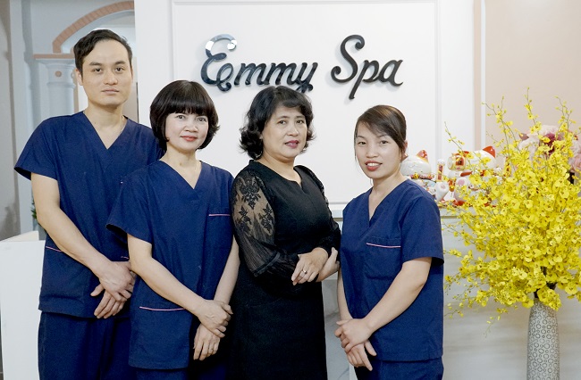 Chị Nguyễn Thúy Hoa cùng đội ngũ chuyên viên của Emmy Spa