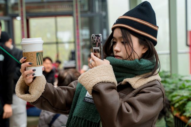 Du khách check-in thức uống đặc biệt tại Starbucks Fansipan.