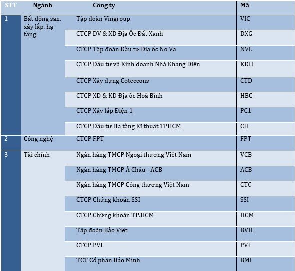 Danh sách do Forbes Việt Nam xếp hạng lựa chọn các công ty niêm yết đạt hiệu quả kinh doanh tốt nhất theo từng lĩnh vực, mà cổ phiếu đang được giao dịch trên sàn giao dịch TPHCM (HSX) và sàn Hà Nội (HNX).