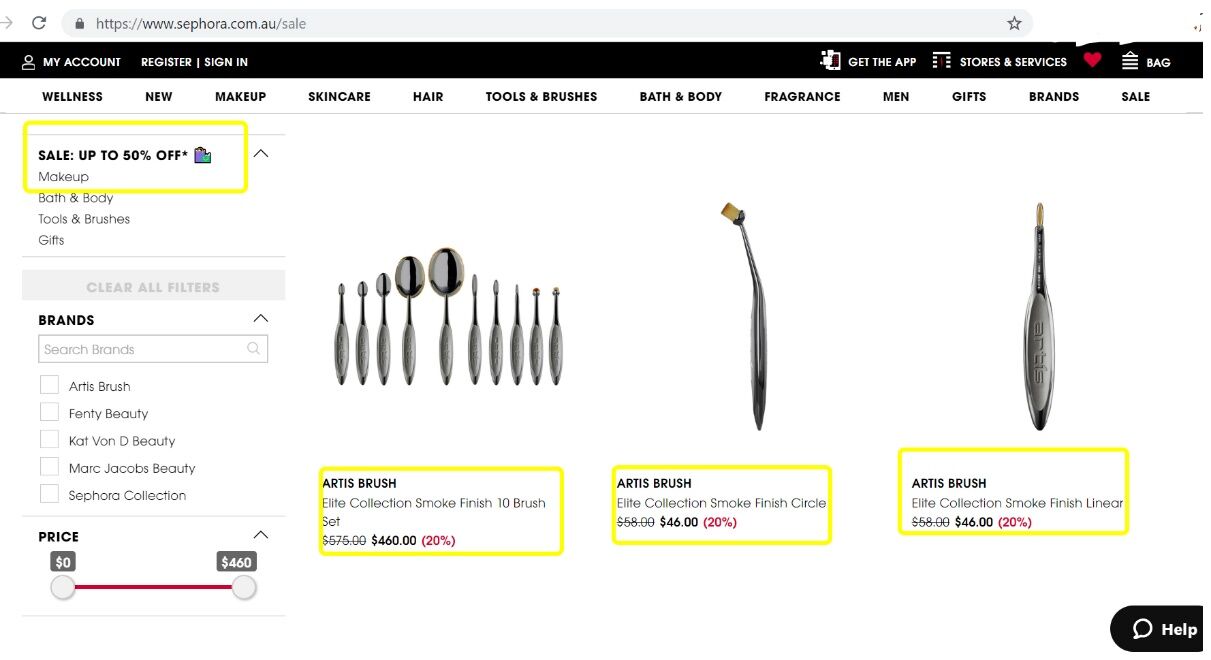 Sephora:Thông điệp giảm đến 50% nhưng có sản phẩm chỉ giảm 20% (khoanh vàng)