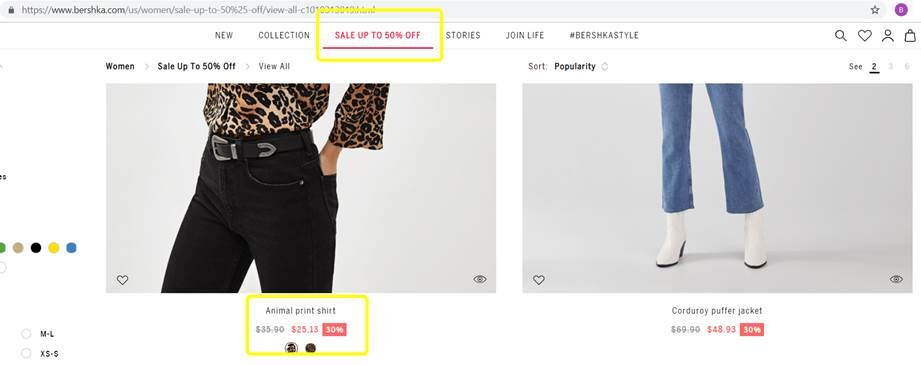 Bershka (Thương hiệu thời trang nước ngoài): thông điệp giảm đến 50% (sale up to 50%) nhưng có sản phẩm chỉ giảm 30%