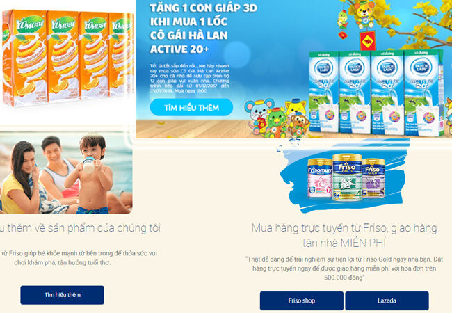 Sản phẩm được công bố chào bán khuyến mại tên website của Friesland Campina