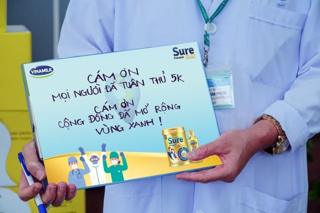 Trong những ngày chống dịch cao điểm, với lời chúc “Tuyến đầu khỏe mạnh, vì Việt Nam khỏe mạnh”, Vinamilk và nhãn hàng Sure Prevent Gold đã liên tục triển khai nhiều đợt trao tặng sản phẩm dinh dưỡng, tiếp lửa cho hơn 10.000 nhân viên y tế tại nhiều bệnh viện trên cả nước như Bệnh viện Việt Đức (Tp.Hà Nội), Bệnh viện Trung ương Huế, Bệnh viện Trung ương Quảng Nam, Bệnh viện Hoàn Mỹ (Tp. Đà Nẵng), Bệnh viện Trưng Vương, Bệnh viện Phụ sản Tiền Giang, Bệnh viện Đa khoa Thành phố Cần Thơ… Riêng tại TP.HCM, địa phương từng là điểm nóng về dịch, Vinamilk đã hỗ trợ gần 800.000 sản phẩm và trang thiết bị y tế tại các bệnh viện điều trị, bệnh viện thu dung, dã chiến, khu cách ly, tổ công tác xét nghiệm đang nỗ lực thực hiện nhiệm vụ phòng, chống dịch Covid-19 trên địa bàn thành phố…