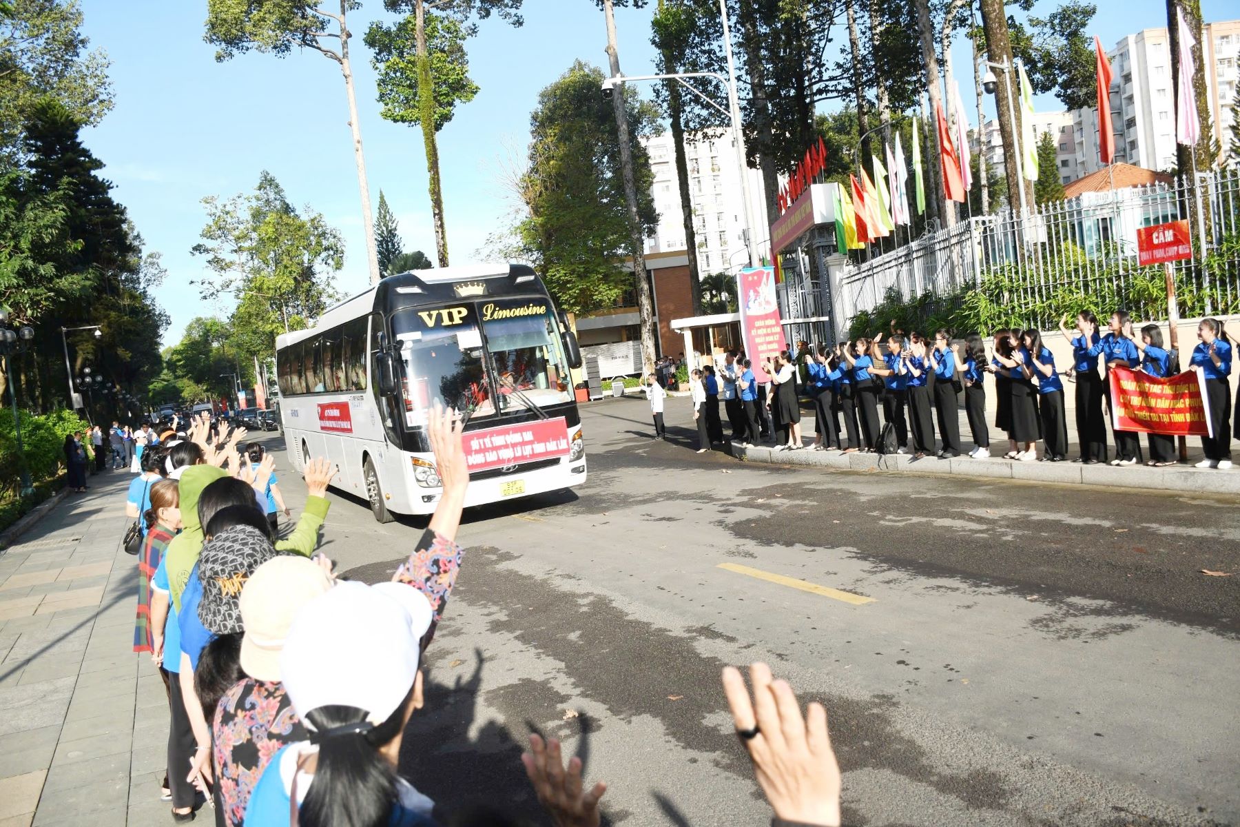 Lãnh đạo, cán bộ, đoàn viên vẫy tay chào đoàn xe lên đường làm nhiệm vụ thiện nguyện tại vùng lũ Đắk Lắk