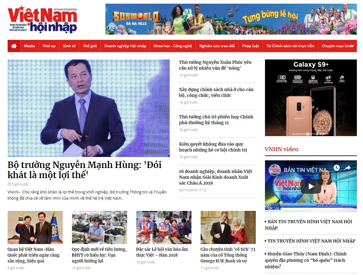 Giao diện Tạp chí Việt Nam Hội nhập online