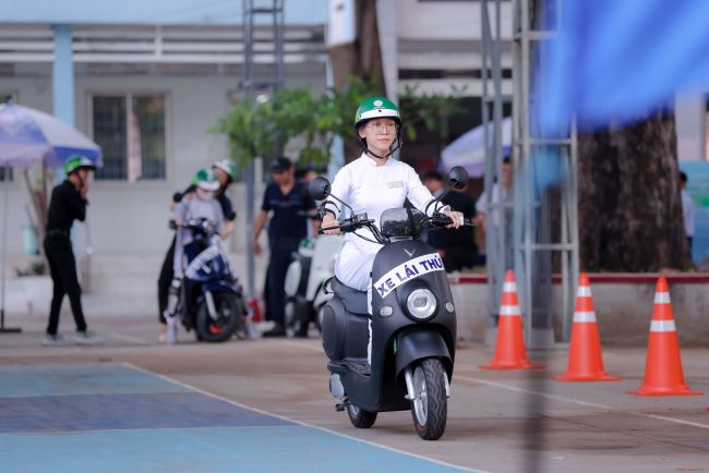 Tại mỗi điểm trường, các em học sinh THPT được tham gia buổi đào tạo về an toàn giao thông và những lợi ích thiết thực của việc sử dụng phương tiện xanh, cũng như được tự tay trải nghiệm các mẫu xe máy điện VinFast.