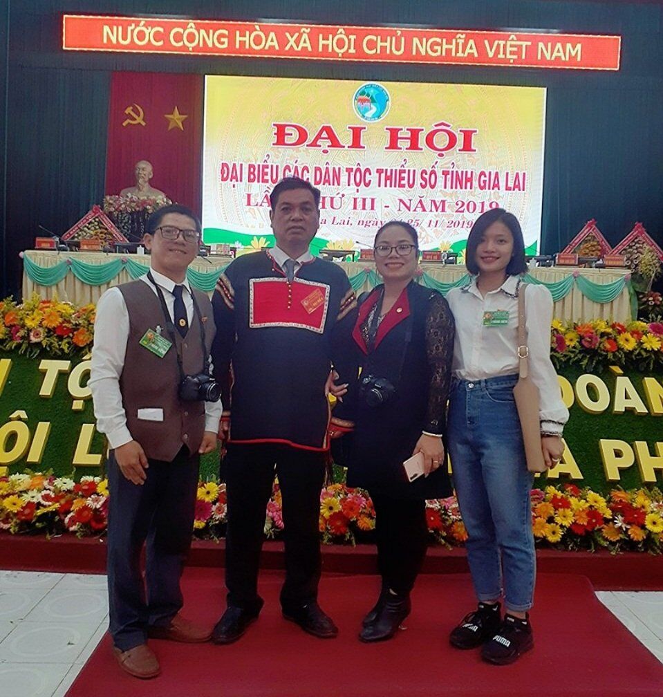 Đồng chí Kpă Thuyên, Phó Chủ tịch tỉnh Gia Lai khoác trên mình bộ trang phục bản sắc của người Tây Nguyên trong dịp đại hội dân tộc thiểu số tại Gia Lai.