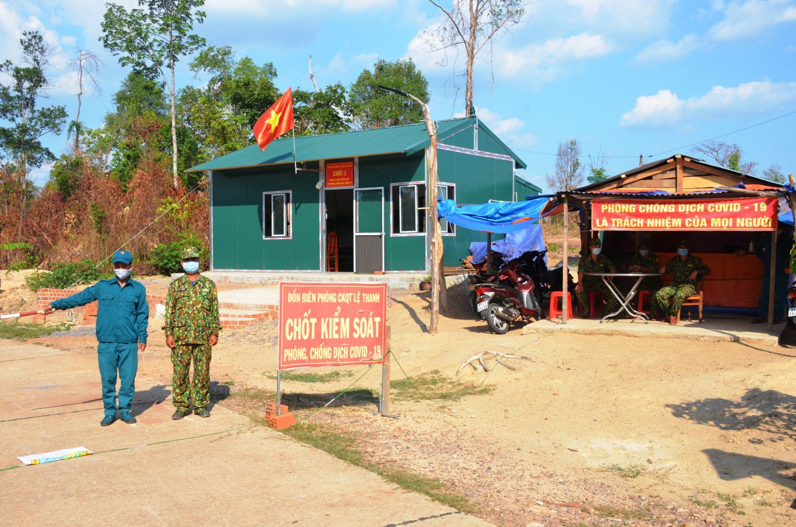 Chốt kiểm soát phòng-chống dịch Covid-19 trên tuyến biên giới (Ảnh: Vĩnh Hoàng).