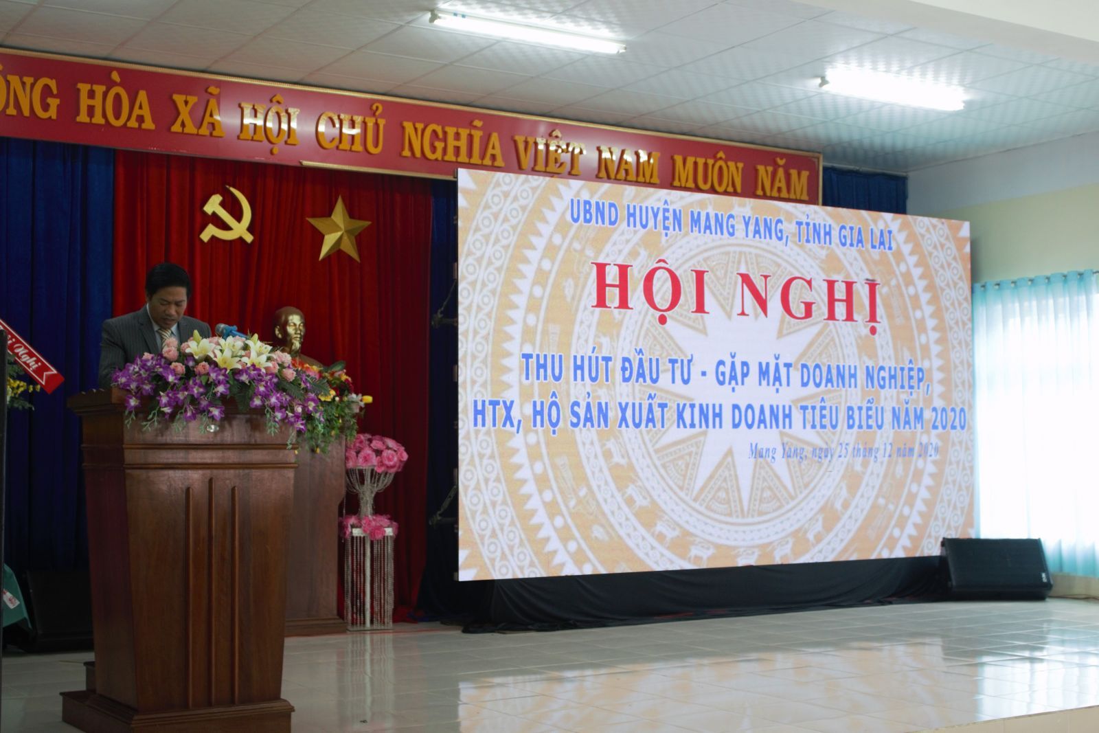 Chiều ngày 25/12/2020, tại hội trường Khu bảo tồn thiên nhiên Kon Ka Kinh, UBND huyện Mang Yang đã tổ chức Hội nghị Thu hút đầu tư, gặp gỡ các doanh nghiệp, hợp tác xã, hộ kinh doanh tiêu biểu năm 2020.