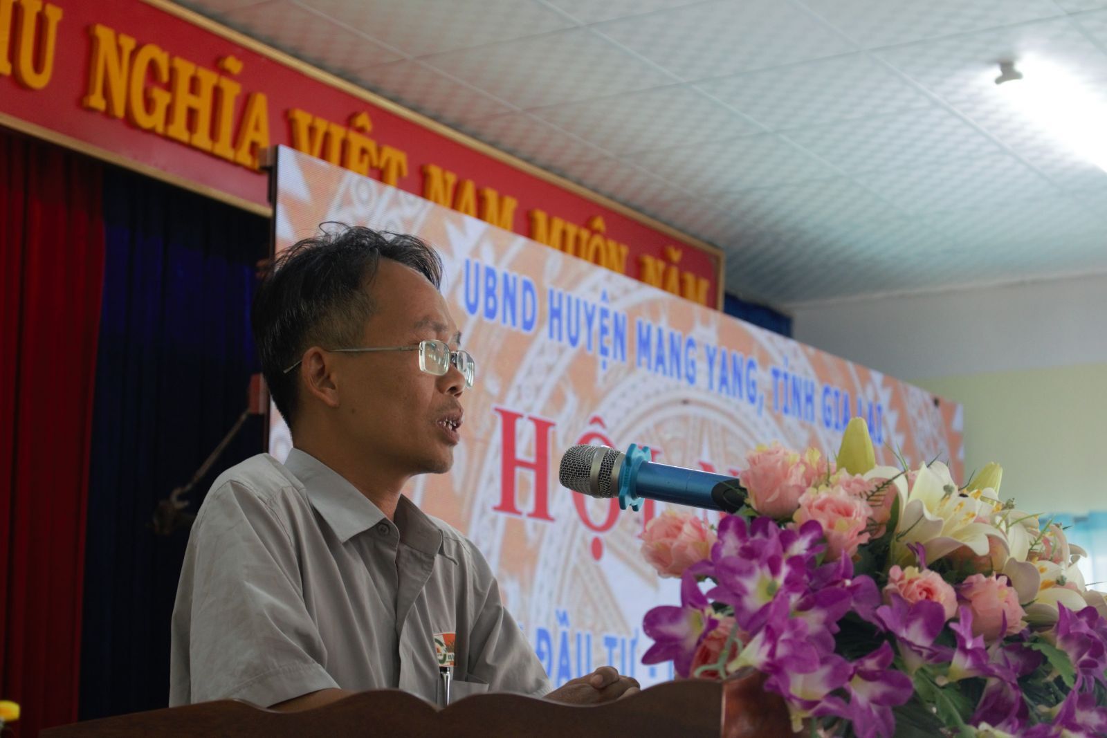 Từ những ý kiến đóng góp của quý lãnh đạo các sở, ban ngành, các tập đoàn, doanh nghiệp tại hội nghị. Đại diện huyện Mang Yang, ông Trần Đình Hiệp – Tỉnh uỷ viên, Bí thư Huyện uỷ gửi lời cảm ơn chân thành. Qua đó mong muốn tất cả đội ngũ cán bộ công chức từ huyện xuống xã hãy lắng nghe tâm tư của các nhà đầu tư, luôn luôn tạo điều kiện thuận lợi nhất để nhà đầu tư về với huyện nhà.