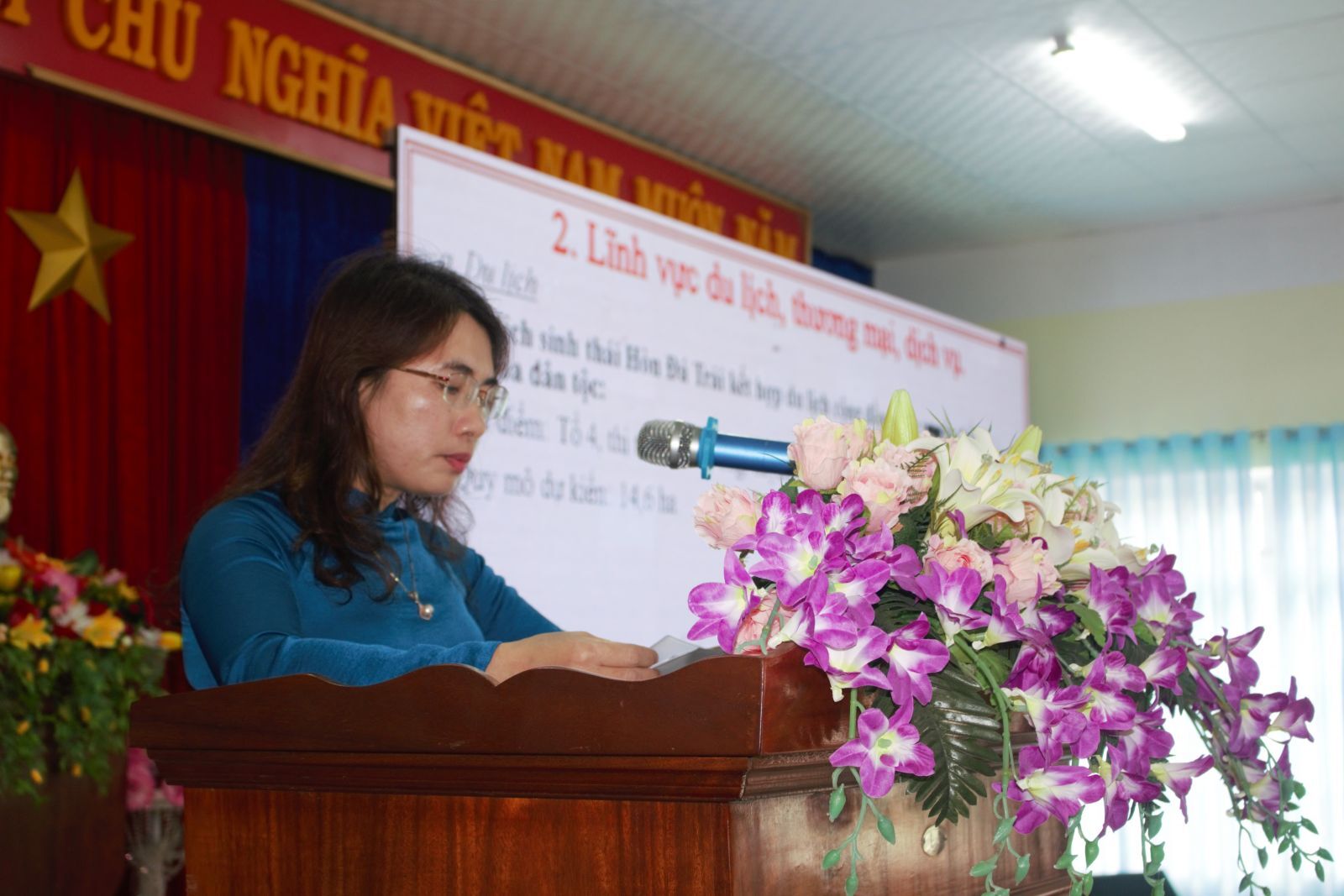 Bà Trịnh Thị Hồng Hạnh giới thiệu các hạng mục kêu gọi đầu tư vào địa bàn.