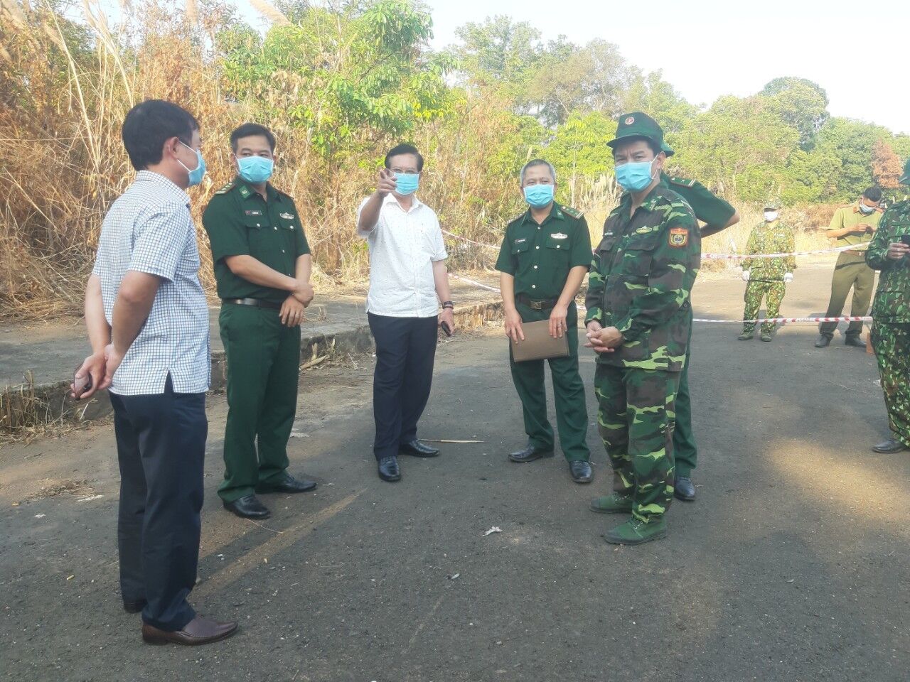 Vừa qua, Đoàn cán bộ của Ban Chỉ đạo Phòng chống dịch Covid-19 tỉnh Gia Lai do ông Nguyễn Dũng – Tỉnh ủy viên, Giám đốc Sở Tài chính, thành viên Ban chỉ đạo, dẫn đầu, đã thăm và làm việc tại một số Đồn Biên phòng khu vực biên giới – cửa khẩu trong tỉnh. Tại Đồn biên phòng 721 của khẩu quốc tế Lệ Thanh, Đoàn cùng với Thượng tá Đặng Trần Hùng - Phó Chỉ huy trưởng Biên phòng tỉnh Gia Lai đã trực tiếp thăm và động viên cán bộ chiến sĩ, nghe đồng chí Trần Quốc Chính – Đồn trưởng báo cáo công việc phòng chống dịch Covid-19 mà Đồn được giao nhiệm vụ, trong đó việc đón và cách ly người nhập cảnh là công việc trọng tâm và rất quan trọng.