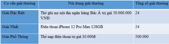 Chương trình khuyến mại có tên gọi “Năng lượng tự nhiên – Trúng hơn 500.000 giải thưởng” diễn ra từ ngày 01/07/2021 đến hết ngày 30/09/2021. Cơ cấu giải thưởng như sau: