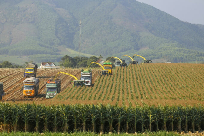 Các thiết bị máy móc hiện đại hàng đầu thế giới hoạt động trên những cánh đồng nguyên liệu của trang trại TH.