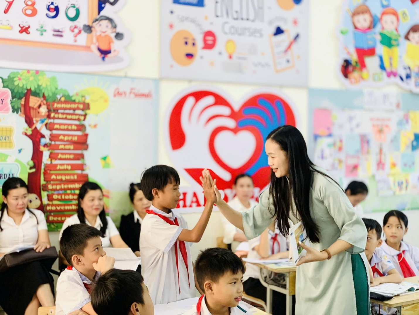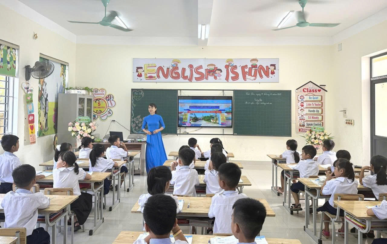 Cô và trò tương tác trong giờ học tại Trường tiểu học Đỉnh Bàn