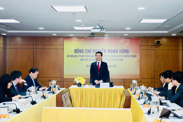 Phát biểu kết luận buổi làm việc, người đứng đầu Bộ TT&TT lưu ý, một trong những điểm đổi mới trong Nghị quyết của Đại hội Đảng lần thứ XIII là đưa vào khái niệm khát vọng Việt Nam, khát vọng phồn vinh hạnh phúc, khát vọng hùng cường thịnh vượng.
