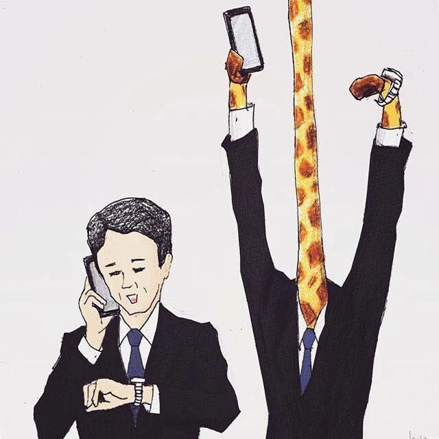 Người bình thường vừa xem giờ vừa có thể nghe điện thoại, còn Hươu cao cổ có vươn tay thế nào, cũng không thể với lấy chiếc cổ của mình. (Ảnh: Instagram k5fuwa).