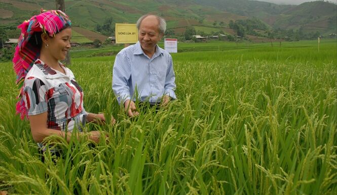 GS.TS Đỗ Năng Vịnh trao đổi với nông dân Yên Bái sản xuất lúa J01 vụ xuân 2014.