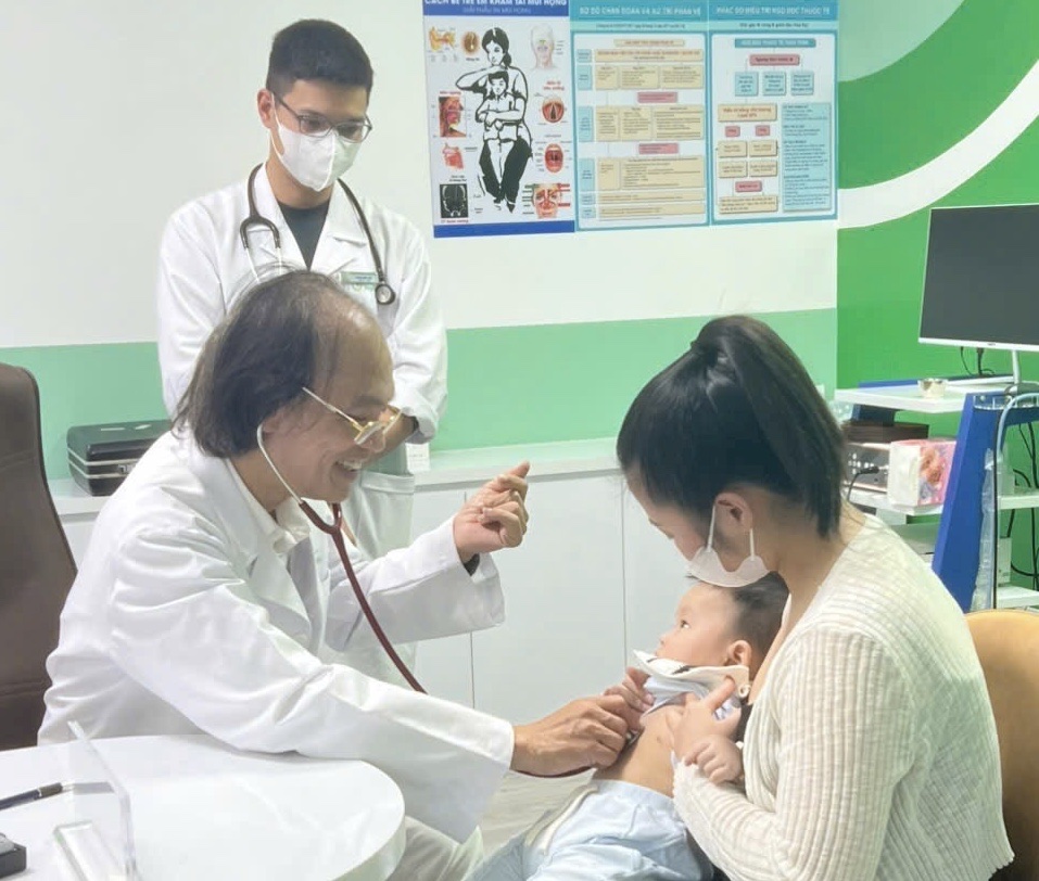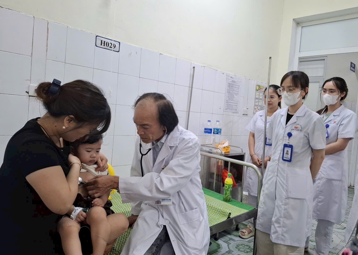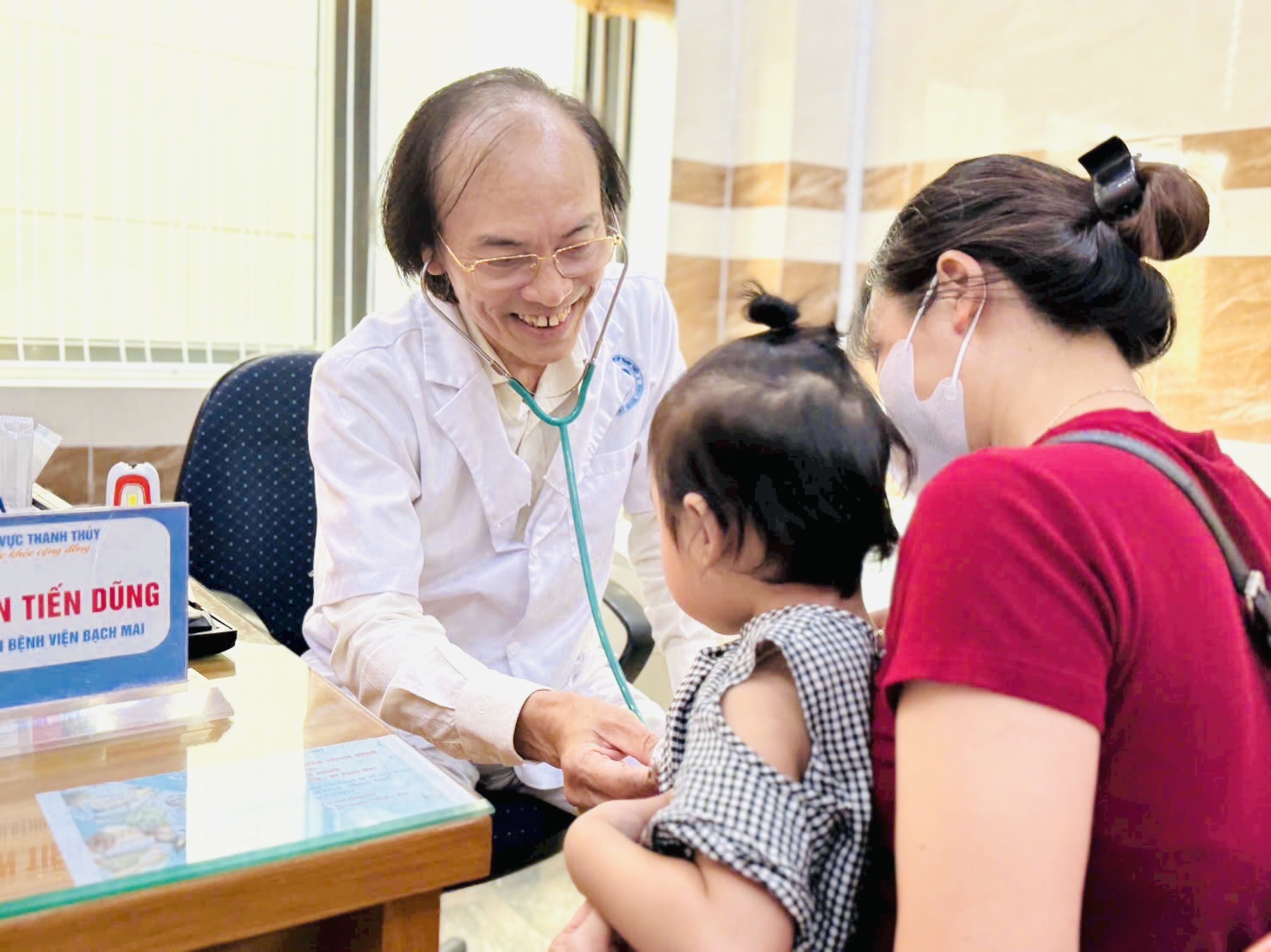 GS.TS. Nguyễn Tiến Dũng thăm khám cho trẻ tại Khoa Nhi, Bệnh viện Đa khoa Vân Đình, Hà Nội.