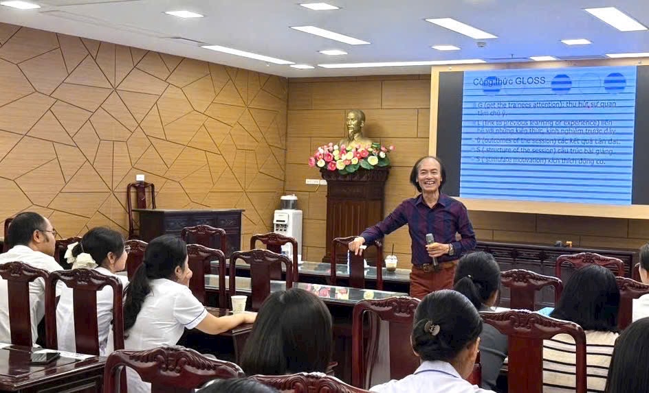 GS.TS. Nguyễn Tiến Dũng tham gia giảng bài về Phương pháp giảng dạy lâm sàng cho các thầy thuốc, bác sĩ của Bệnh viện Đa khoa Nam Định và các Trung tâm Y tế thuộc Sở Y tế Nam Định (nay là Sở Y tế Ninh Bình).