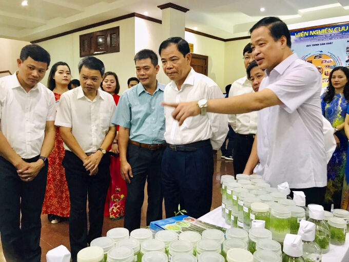 GS.TS Võ Đại Hải giới thiệu với Bộ trưởng Bộ NN-PTNT Nguyễn Xuân Cường các thành tựu nghiên cứu giống trong lĩnh vực lâm nghiệp.