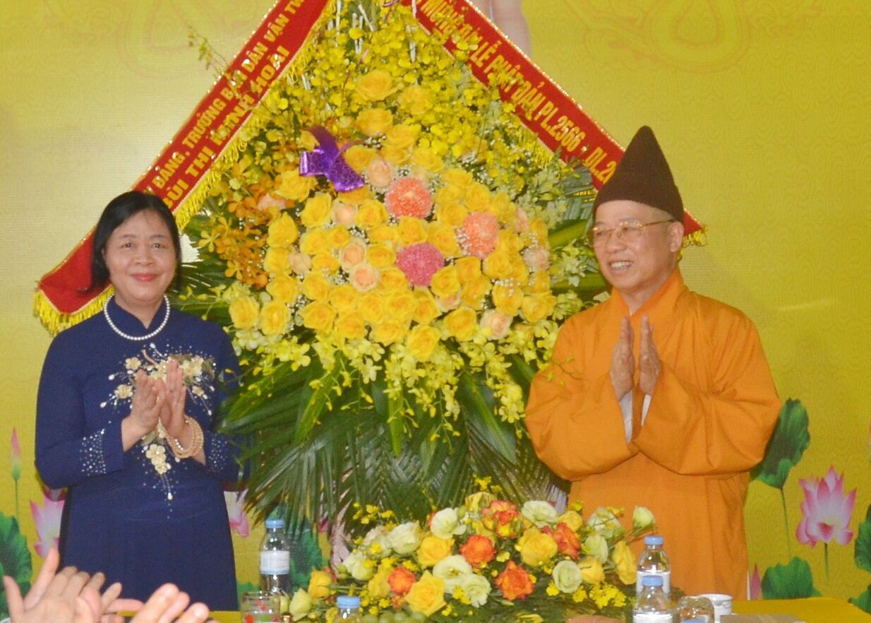 Cũng trong không khí hân hoan kính mừng Lễ Phật đản, thay mặt lãnh đạo Đảng, Nhà nước, Trưởng ban Dân vận Trung ương Bùi Thị Minh Hoài đã đến thăm, tặng hoa và chúc mừng Hòa thượng Thích Thanh Quyết - Phó Chủ tịch Hội đồng Trị sự Trung ương Giáo hội Phật giáo (GHPG) Việt Nam, Chủ tịch GHPG Việt Nam tỉnh Hà Nam; chúc mừng các chư vị giáo phẩm, hòa thượng, thượng tọa, ni trưởng, ni sư, chư tôn đức, tăng ni cùng nhân dân trong Tỉnh đón Đại lễ Phật đản an lạc, hoan hỉ.