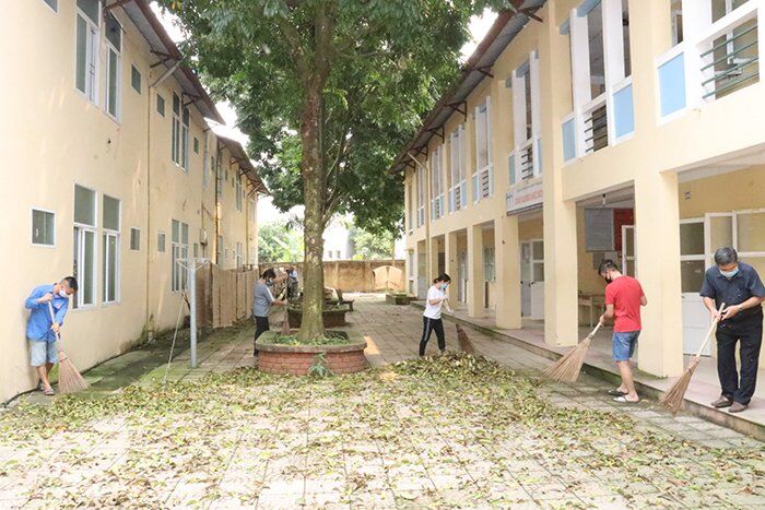 Khu cách ly tập trung tại Cơ sở Sơn Tây ở phường Xuân Khanh, thị xã Sơn Tây (Hà Nội) được dọn dẹp sạch sẽ.