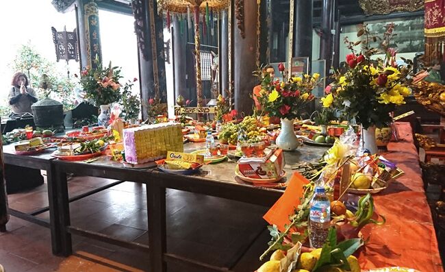 Các lễ bày trên ban thờ chủ yếu là lễ nhỏ tiền vàng, nhiều là vàng khối. Không có mã lớn.
