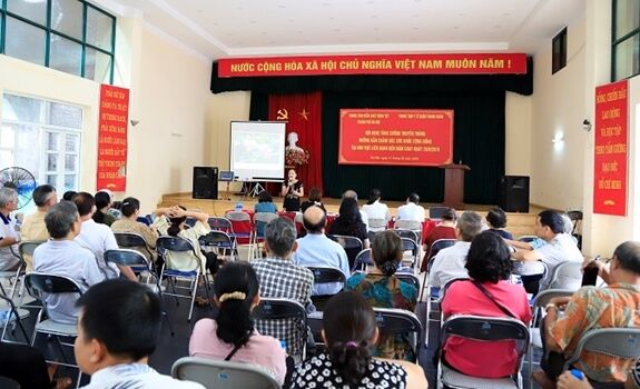 Tham dự buổi truyền thông là các cán bộ ban, ngành của phường, lãnh đạo cụm dân cư, tổ dân phố; cộng tác viên dân số, y tế… Đây cũng là lực lượng tuyên truyền viên nòng cốt để tiếp tục thông tin, tuyên truyền cho người dân trên địa bàn. Tại buổi truyền thông, bác sĩ của Trung tâm Kiểm soát bệnh tật TP Hà Nội cùng chuyên gia của Viện sức khỏe nghề nghiệp và môi trường đã thông tin đến người dân những người có nguy cơ về sức khỏe sau vụ cháy và cần được khám và tư vấn về sức khỏe.