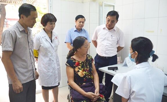 Lãnh đạo Sở Y tế kiểm tra công tác khám, tư vấn sức khỏe cho người dân tại trạm y tế phường Thanh Xuân Trung.