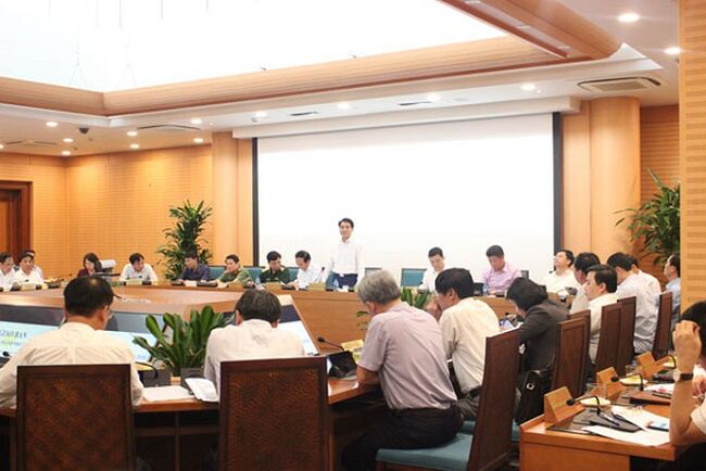 VNHN - Chiều 4-5, Ủy viên Trung ương Đảng, Phó Bí thư Thành ủy, Chủ tịch UBND TP Hà Nội Nguyễn Đức Chung đã chủ trì cuộc họp giao ban công tác UBND thành phố tháng 4-2018. Cùng dự có các Phó Chủ tịch UBND thành phố Nguyễn Thế Hùng, Nguyễn Doãn Toản.