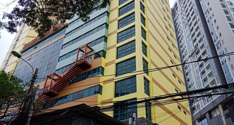 Tòa nhà Kim Khí Thăng Long nơi một số người dân chạy ra ngoài đường vì cảm nhận được rung lắc do ảnh hưởng động đất