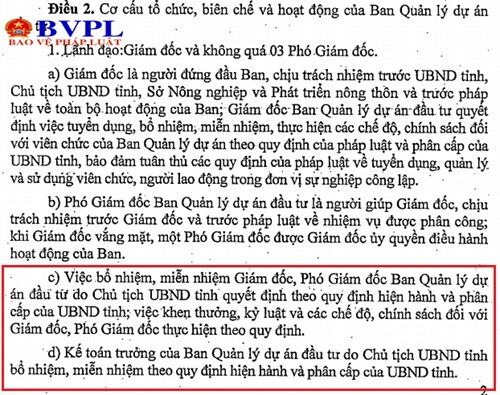 Tại điểm c, d khoản 1 điều 2 Quyết định 3027/QĐ – UBND Chủ tịch UBND tỉnh đã quy định rõ: Các chức danh Giám đốc, Phó Giám đốc và Kế toán trưởng BQL phải do Chủ tịch UBND tỉnh bổ nhiệm hoặc miễn nhiệm.