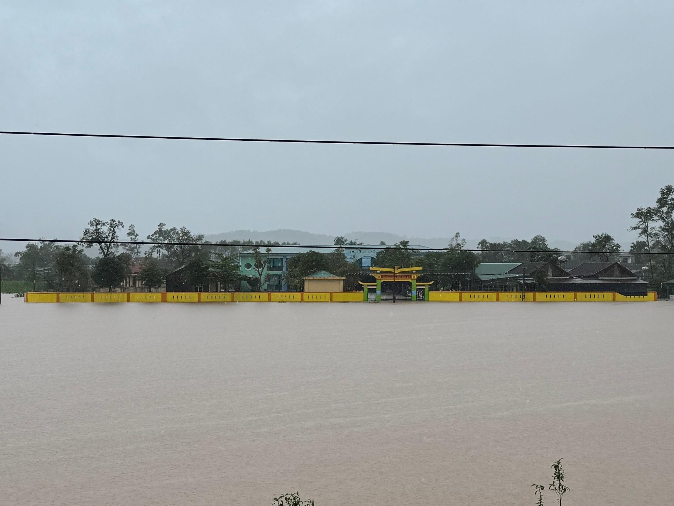 Một trường học trên địa bàn xã Cẩm Duệ bị bị nước lũ cô lập nhiều ngày