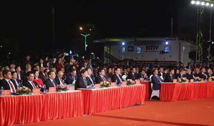 Về phía Hà Tĩnh có Bí thư Tỉnh ủy Lê Đình Sơn, Phó Bí thư Thường trực Tỉnh ủy Hoàng Trung Dũng, Chủ tịch UBND tỉnh Trần Tiến Hưng; các đồng chí Ủy viên BTV Tỉnh ủy, Thường trực HĐND, lãnh đạo UBND, Ủy ban MTTQ tỉnh; nguyên lãnh đạo tỉnh qua các thời kỳ; các Mẹ Việt Nam anh hùng, Anh hùng lực lượng vũ trang; đại diện các tầng lớp nhân dân cùng dự lễ.