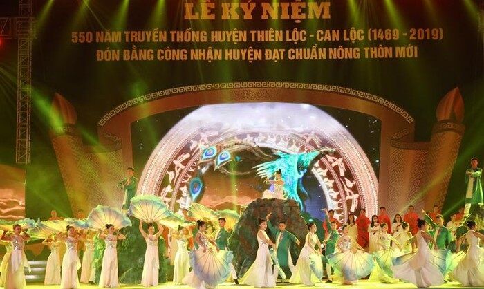 Tiếp sau Lễ kỷ niệm là Chương trình nghệ thuật đặc sắc chào mừng 550 năm truyền thống huyện Thiên Lộc – Can Lộc và đón bằng công nhận huyện đạt chuẩn nông thôn mới. Với màn sử thi “linh khí sông Nghèn”, gồm 3 chương: từ lung linh miền cổ tích đến những bài ca bất tử và đất lộc nở hoa./.