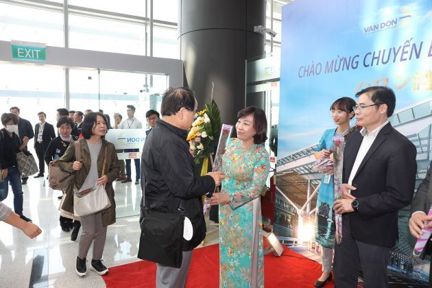 Chuyến bay chở theo 100 hành khách, theo hình thức chuyến bay charter (chuyến bay thuê bao dành riêng cho du khách của một hãng lữ hành). Bà Vũ Thị Thu Thuỷ - Phó chủ tịch UBND tỉnh Quảng Ninh cùng đại diện các sở ngành của tỉnh, huyện Vân Đồn và sân bay quốc tế Vân Đồn đã tặng hoa và trao quà cho các vị khách. Các du khách đều tỏ ra bất ngờ và vui mừng khi vừa bước chân tới Việt Nam đã được đón tiếp trọng thị.