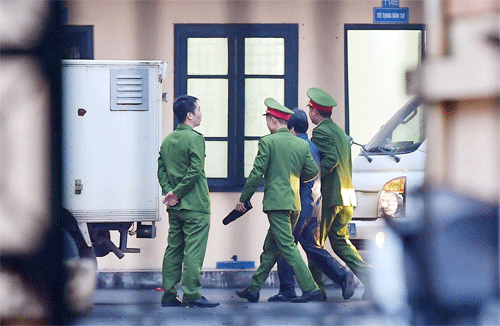 Phiên tòa do thẩm phán Trương Việt Tòa làm chủ tọa, dự kiến diễn ra trong ba ngày, 28-30/1. An ninh được thắt chặt với ba lớp bảo vệ. Hàng rào sắt được dựng quanh khu vực cổng TAND Hà Nội, cách hàng tường bao gần 3m.