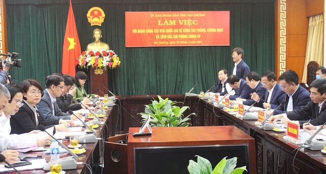Chiều 24/3, Đoàn công tác của Ban Chỉ đạo Quốc gia phòng chống dịch Covid-19 do ông Đỗ Xuân Tuyên, Thứ trưởng Bộ Y tế, làm trưởng đoàn làm việc với tỉnh Hải Dương về công tác phòng chống dịch Covid-19 và triển khai việc tiêm vắc xin phòng Covid-19.
