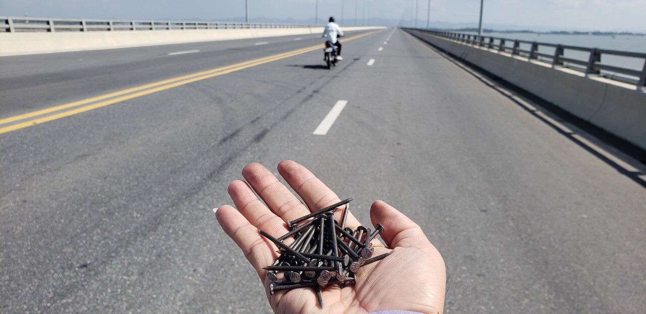 Ghi nhận của phóng viên, trong vòng nửa tháng, khoảng 3 lần cây cầu này bị rải đinh. Trước đó, ngày 19-20/11, đơn vị vận hành cầu đã gom được khoảng 2 kg đinh, đến ngày 28/11 đinh tiếp tục xuất hiện, đã có xe máy dính đinh phải dắt bộ trên cầu.