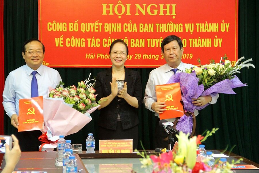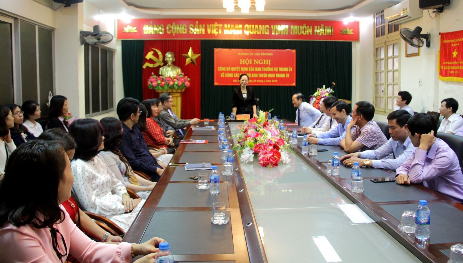 VNHN - Sáng 29/3/2019, tại Ban Tuyên giáo Thành ủy Hải Phòng, đồng chí Nguyễn Thị Nghĩa - Phó bí thư Thường trực Thành ủy, Trưởng Đoàn ĐBQH Hải Phòng chủ trì hội nghị công bố Quyết định của Ban Thường vụ Thành ủy về công tác cán bộ Ban Tuyên giáo.